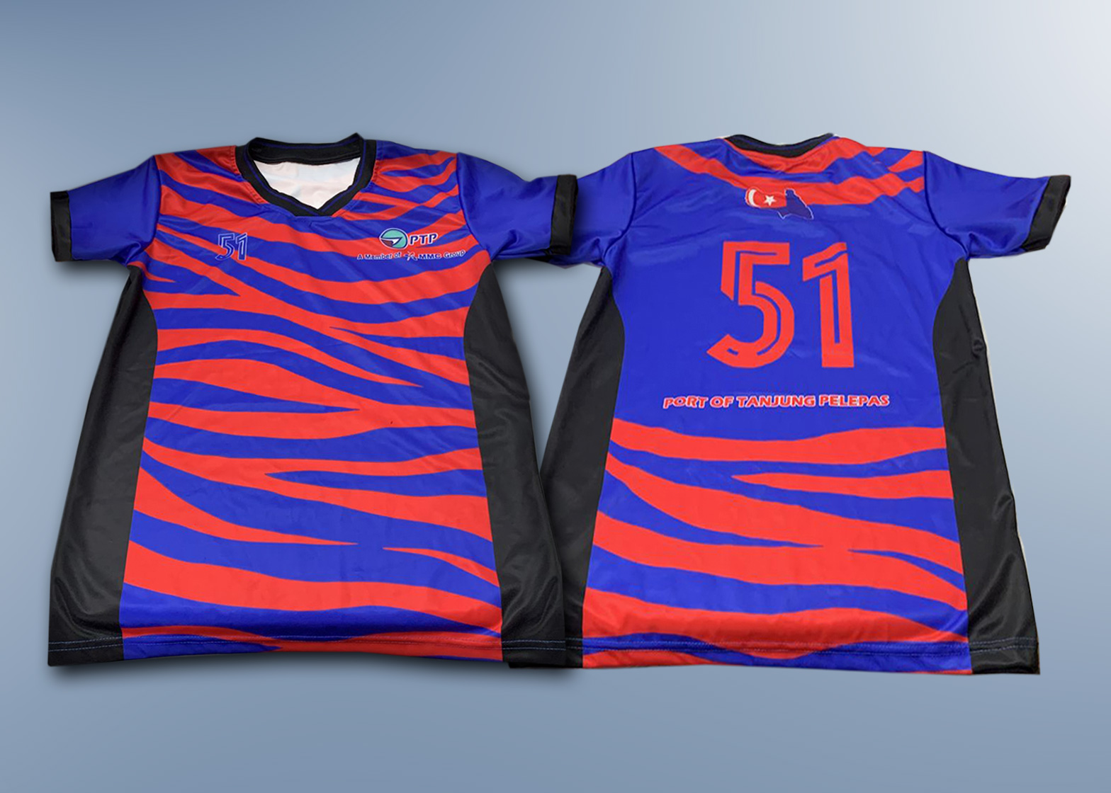 The sports featured in the extravaganza include Volleyball, Football, and Badminton, offering a diverse range of activities to engage all participants. Sporting the colors of the Johor state flag, with Red and Blue hues, the Port of Tanjung Pelepas (PTP) sport jerseys are made from 100% microfiber polyester, ensuring comfort and performance in various weather conditions.